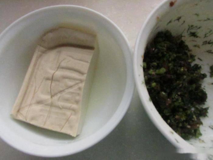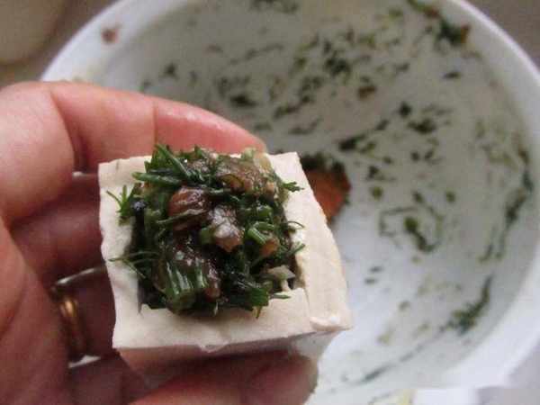 豆腐,肉餡,葱,薑,醬油,鹽,茴香,澱粉,花生油。