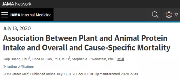 [4]JAMA:多吃植物蛋白,少吃蛋類、紅肉,最高可降低1/3死亡風險,生物世界,2020-07-21