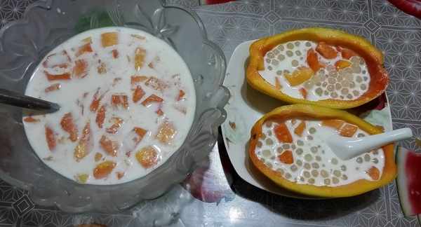 西米100克、牛奶適量、芒果2個、水適量、糖適量、冰塊適量。