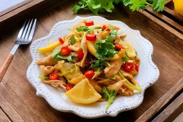 檸檬手撕雞是一道爽口,清淡健康的菜品。以下是詳細的制作方法和口感介紹: