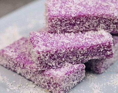 第六步:把紫薯糊倒入鍋中,再放入白砂糖和酸奶,小火加熱,攪拌至糖融化。第七步:把淀粉倒入鍋中,然後不停的攪拌,直至面糊熟透變濃稠,然後關火。第八步:將煮好的紫薯糊倒入模具中,抹平整,室溫放涼備用。第九步:把做好的紫薯糕脫模,然後切成塊,在表面粘一層椰蓉即可。