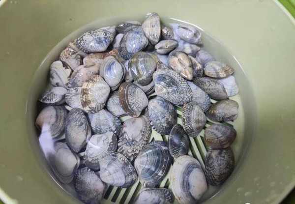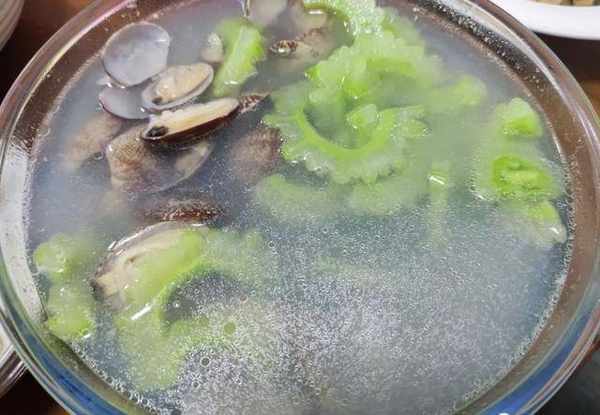 1.手心抓一把食鹽,搓洗苦瓜的表面。洗幹凈後的苦瓜對半切開,然後掏出裡面的苦瓜籽還有白瓤刮幹凈。接著我們將苦瓜切下片放在一旁。花蛤用食鹽水搓洗下,洗好後放碗中;