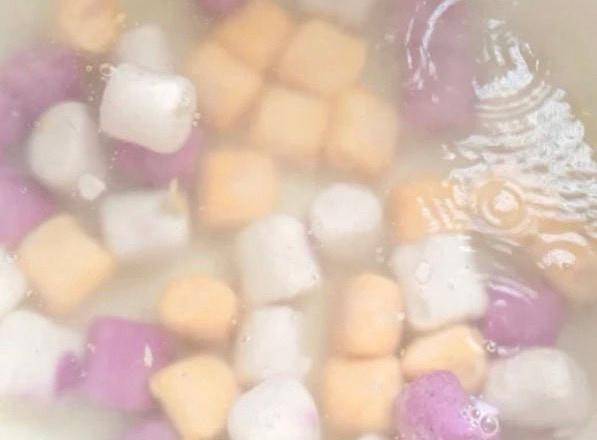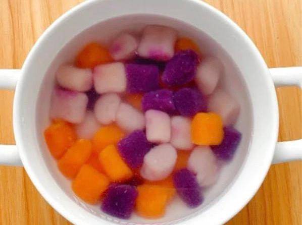 第四步:再次起鍋燒一鍋開水,水開放入芋圓,煮至芋圓漂起即可,然後撈出過涼