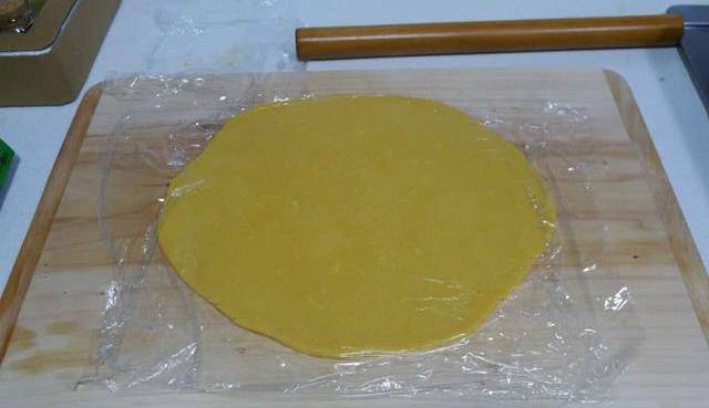 步驟5混合成團後比較軟,直接操作會很粘,所以還要放入冰箱冷藏到有一定硬度。再把冷藏後的面團上下都放上保鮮膜,搟成3-4毫米厚的大片