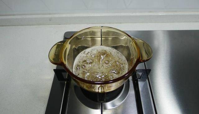 步驟1首先是熬制焦糖,先把白砂糖和15克涼水倒進鍋裡,用小火慢慢熬煮,這期間不要攪動。糖會慢慢溶化,然後開始形成泡泡,等水完全蒸發後糖液的顏色就是慢慢變黃,接著變成棕紅色