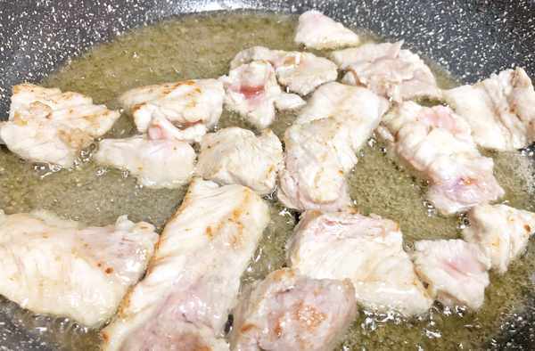 6、再次起鍋燒油,等油熱後調大火,下入醃制好的裡脊肉,快速翻炒至變色後即可盛出。