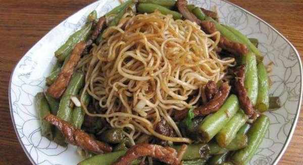 當然瞭我們還可以用我們自制的掛面做出傢常蓋澆面,我最喜歡的就是豆角炒肉蓋面,今天就教教你們,豆角500克,花椒20克,肉末,花生,少許薑,少許蒜,幹辣椒20克,鹽,油,把豆子掰成一英寸長,把幹辣椒切成小塊。,將炒鍋放入油中,鍋底鋪上豆角,註意翻面,如豆角開始起皺,成熟後可取出瀝幹油。,鍋裡放少許油,放入薑末、蒜片和肉末炒勻,加入花椒粒。