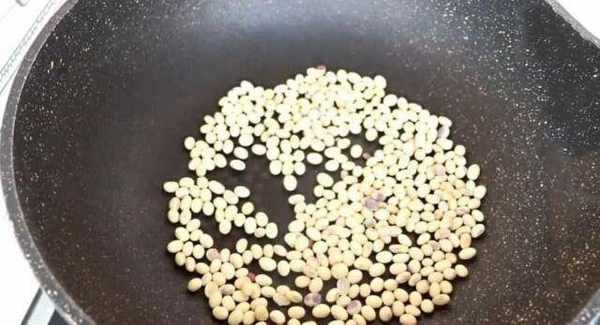 3.將黃豆清洗幹凈後倒入鍋中,開小火不停翻炒至熟,炒至表面微黃後倒入破壁機中打成黃豆粉。