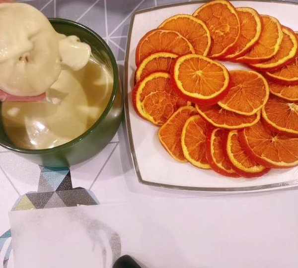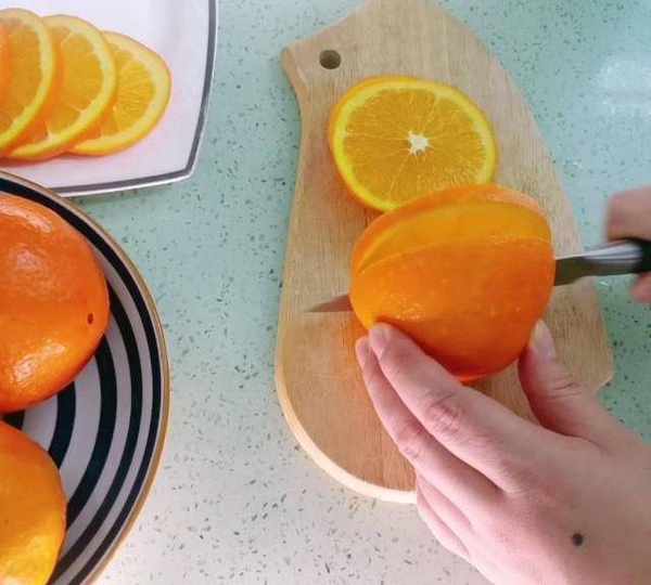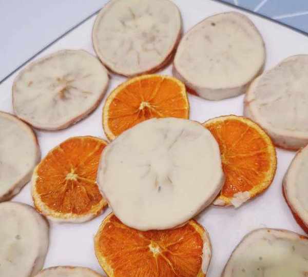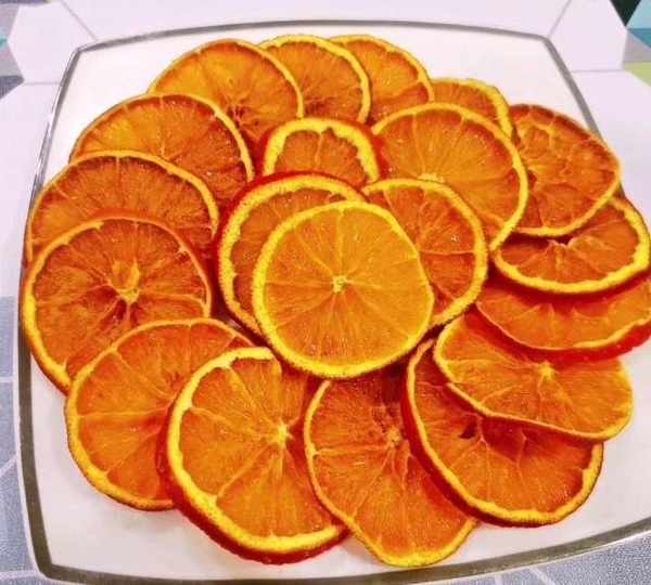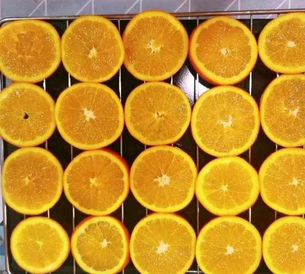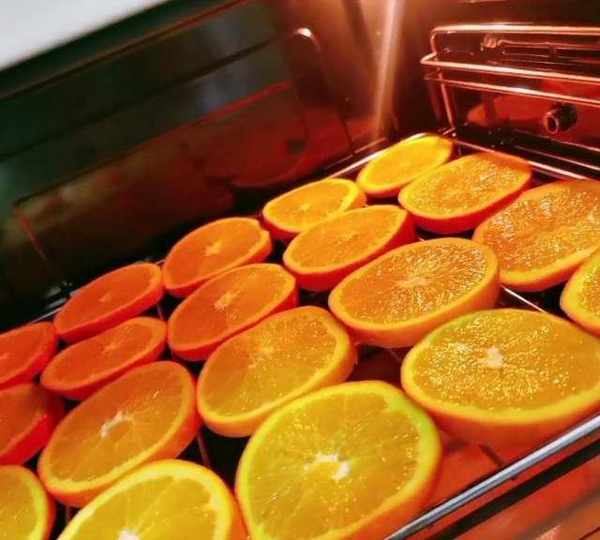 第6步、烤箱熱風模式100度烤4小時左右至橙片酥脆(勤翻動)。