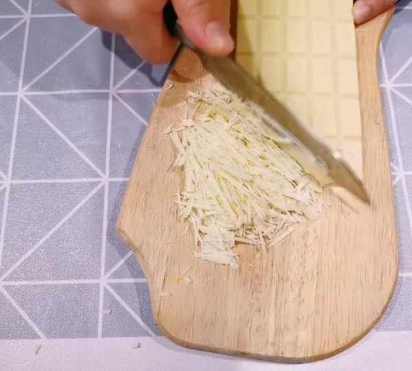 第4步、徹底冷卻後切成3-5mm的薄片。