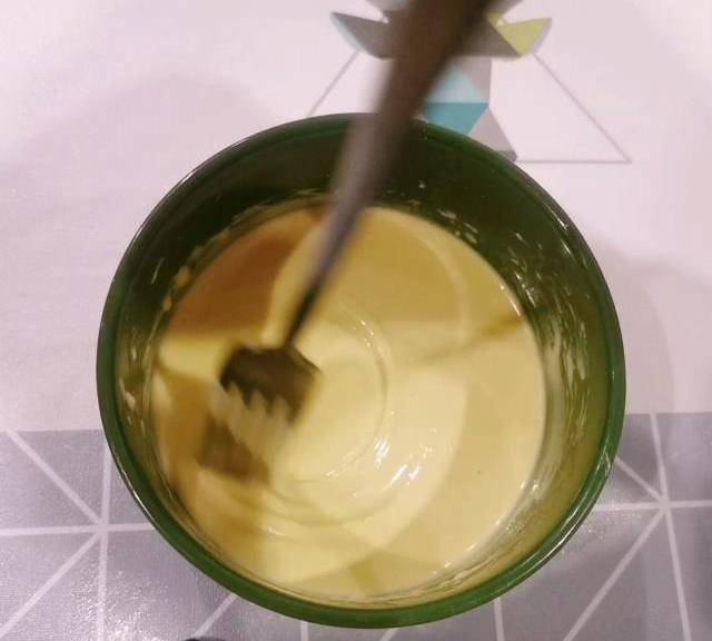 第10步、微波爐中低火加熱,每隔30秒鐘取出觀察狀態且攪拌一次。