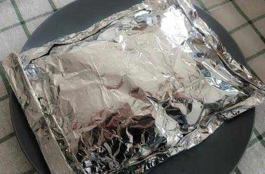 關火,取出,放在盤子裡,撕掉上面一層錫紙,趁熱撒上蔥末,最後再擺上一點香菜做點綴。(取得時候註意燙手,最好是借助某種工具拿出來。)