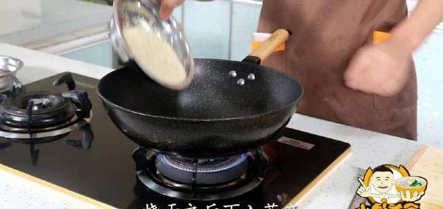 3、先開火把鍋燒幹、燒幹之後下入芝麻、先將芝麻稍微炒下。