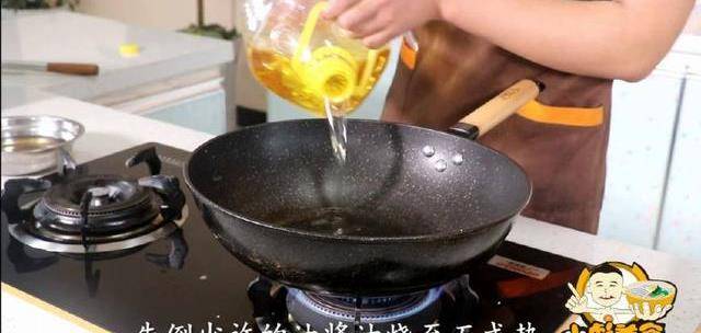 8、土豆控水的時候,另起一口鍋、先倒少許的油將油燒至五成熱。