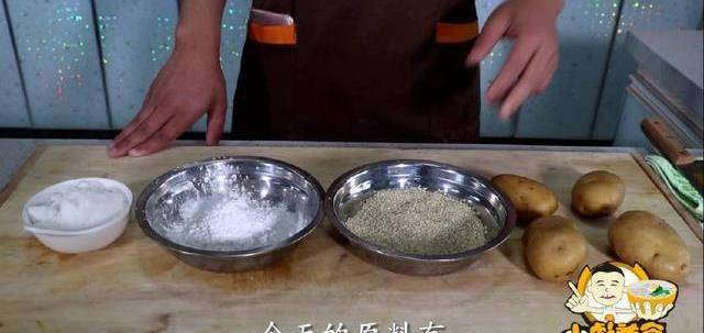 原料:土豆、芝麻、淀粉、白糖、油