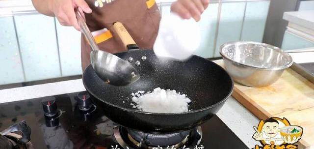 12、鍋中少留一點油、放入一碗的白糖、開小火把糖炒一下。
