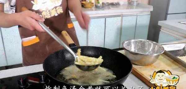 11、因為薯條那會我們已經煮過瞭、所以稍微炸制定下型就可以、看上去薯條色澤金黃、把土豆給它控下油。