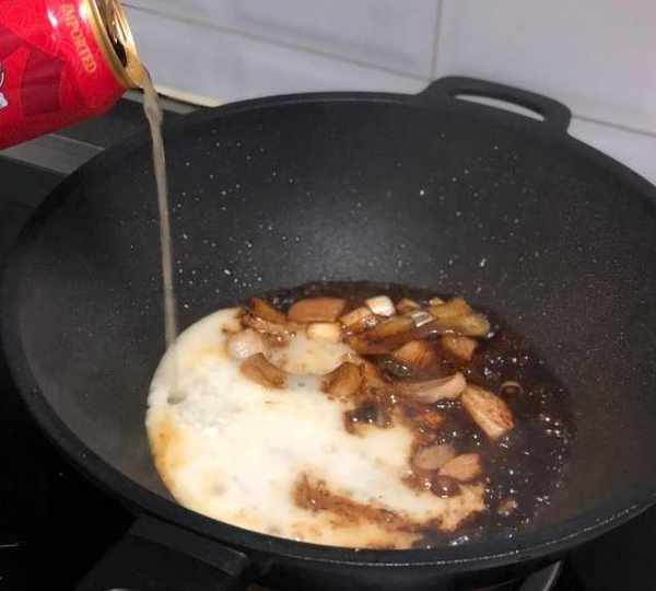第5步、5.立即加入啤酒,加入醋,帶魚可以不加水,完全用啤酒燉,啤酒經過加熱酒精揮發掉,孩子也可以吃。