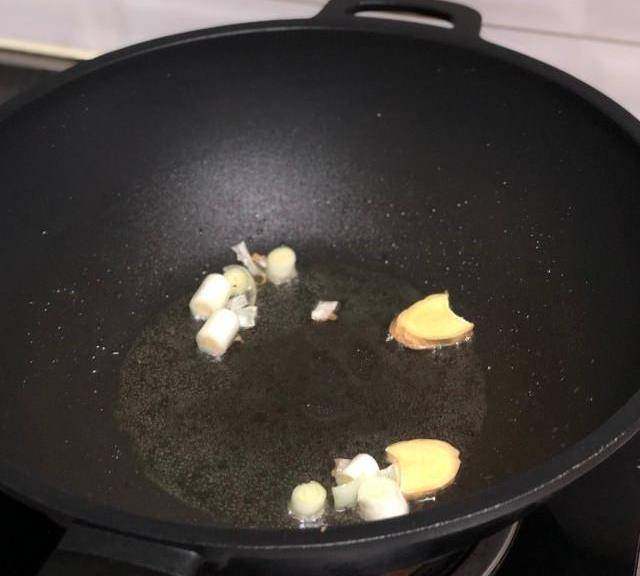 第3步、3.另起鍋熱油,放入蔥薑炒出香味兒。