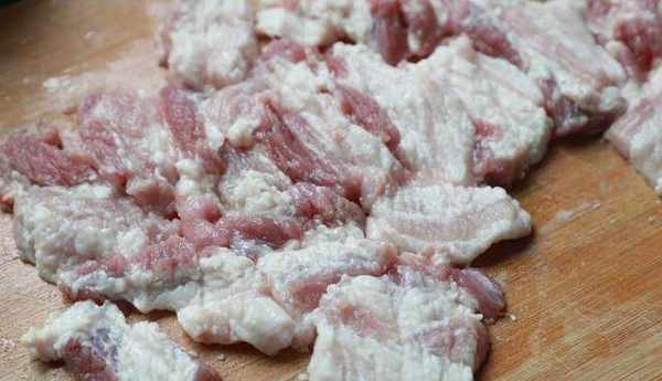 1.將五花肉清洗幹凈,去皮,切成1厘米厚的薄片。用刀背輕輕拍打肉,正反面都要拍,將五花肉的組織拍松。