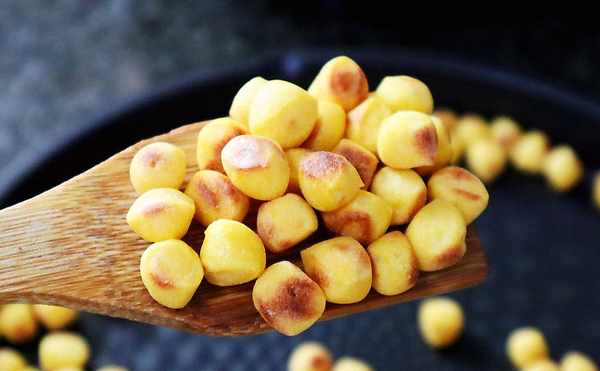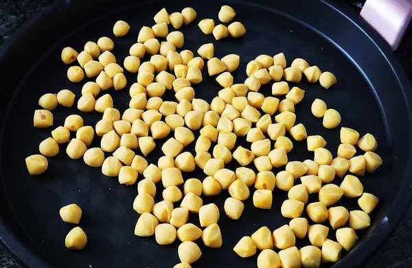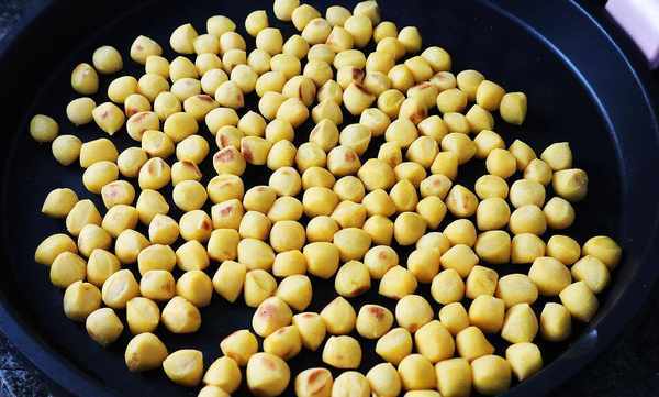 8、蓋上蓋子繼續烙制,直到小饅頭的切面變得焦黃,用鍋鏟撥動起來小饅頭會發出嘩啦嘩啦的聲音,拿一粒放進嘴巴裡,小饅頭已變得外焦裡嫩,這時候就可以出鍋瞭。