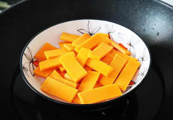 1、準備一塊南瓜,去皮洗凈後切成薄片,裝入盤中隔水蒸熟。(南瓜我喜歡買靠近尾部沒有瓤的那一截,甜度比較濃。)