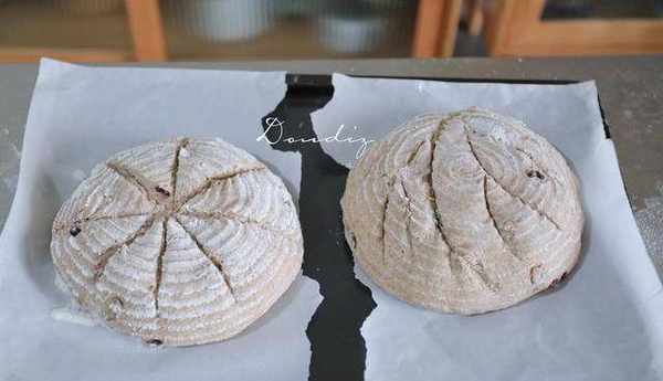 5、二發發酵至面團的兩倍大小扣出在油紙上,抖撒上一層薄薄的面粉然後進行割包。劃割的紋理根據個人喜好決定,烤箱提前預熱220度上下火中層烤制30分鐘。烤制的前十分鐘,底下烤盤放入一些滾燙的開水制作水蒸氣而後再拿出來。