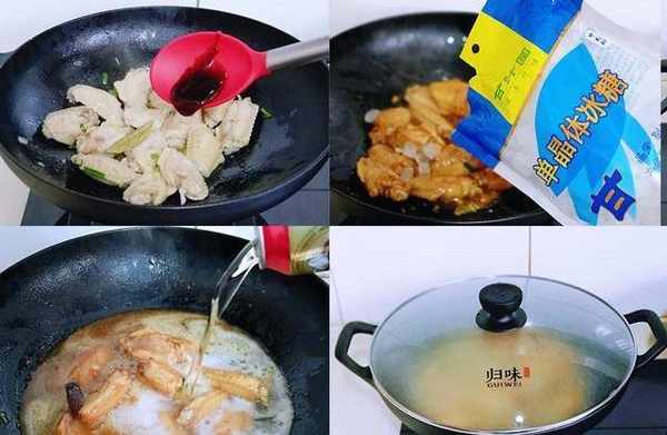 4、加入冰糖、啤酒,我1斤雞翅,加一罐啤酒正好。蓋上蓋子,燒開後轉小火燜煮約25分鐘。