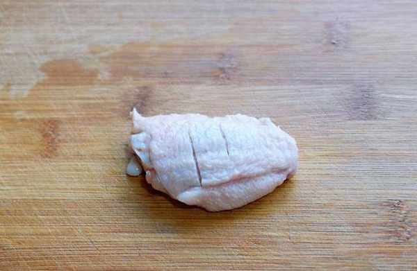 1、首先處理雞翅,將雞翅用刀劃兩下。