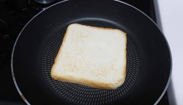 4.平底鍋抹上薄薄的一層黃油,好好烤一下切片面包。兩面金黃為準。