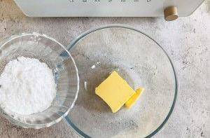 1.將黃油提前室溫軟化,加入糖粉