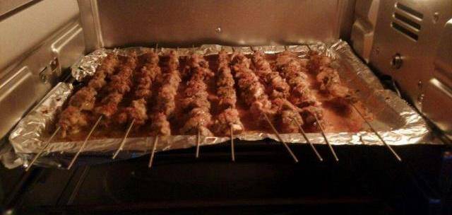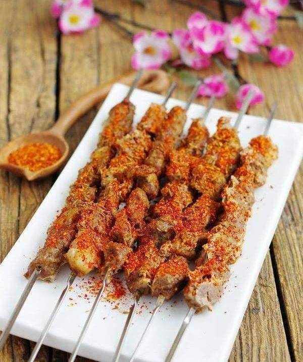 5、烤箱預熱200度,然後把肉放進烤箱烤半個小時,時間到瞭之後拿出來翻面撒上一些食用鹽,繼續烤10分鐘,這個時候我們可以把烤箱的溫度調高到250度,這樣才可以讓肉上色更均勻,時間到瞭之後就可以拿出來瞭,在上面撒上一些孜然粉,辣椒面,身上冒油的烤羊肉串兒就制作完成瞭,搭配著冰鎮啤酒,別提有多過癮瞭。