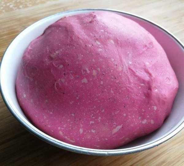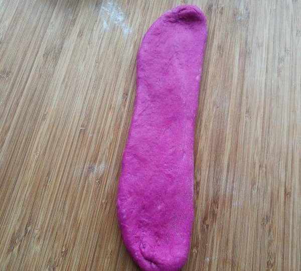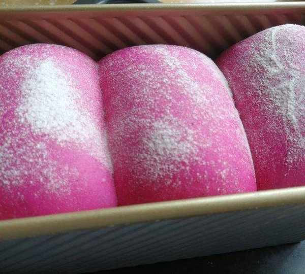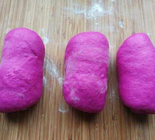 原料:高筋面粉、耐高糖酵母、火龍果汁、雞蛋、米糠油、白糖、鹽。