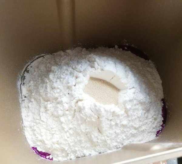 第3步、放入面粉,酵母埋在頂部面粉中,啟動兩個和面程序。