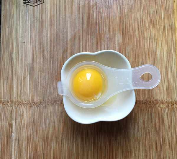 1,準備兩個無水無油的盆,分離出蛋黃和蛋白,分別盛入兩個盆裡。