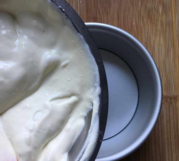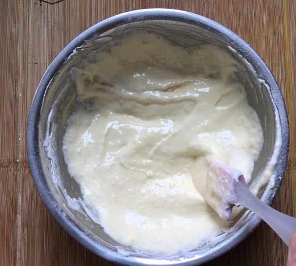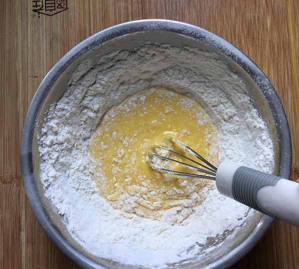 其次,在翻拌面糊的時候一定要上下翻拌或者畫“之”字翻拌,千萬不要轉圈攪拌,那樣容易消泡,消泡後蛋糕就不容易爬起來瞭。