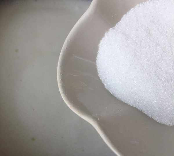 4,有蛋清的盆裡先滴入幾滴白醋,用電動打蛋器打幾下,蛋清出現大泡時加入40克白糖的1/3。