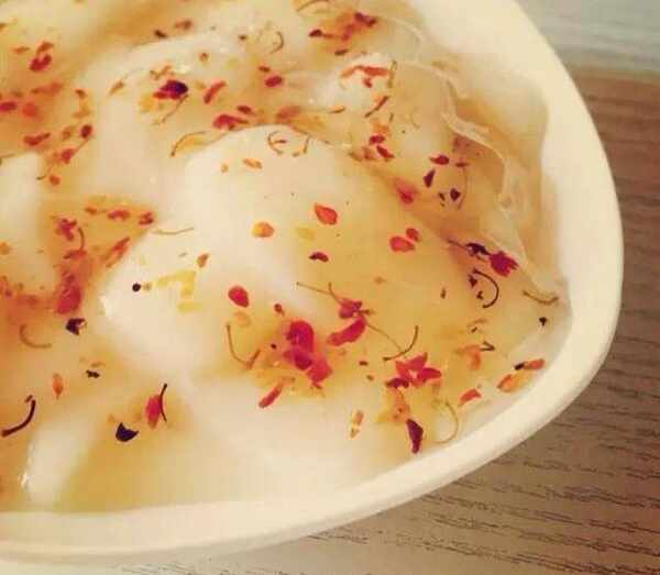 7、出鍋裝盤後還可以撒上幾朵幹桂花裝飾,提升整道菜的格調