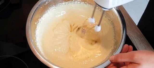 1.將黃油隔水融化。在融化的黃油中倒入糖,蛋白,面粉,用打蛋器打成均勻的糊狀。