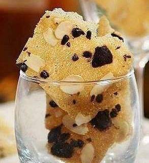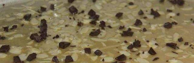 食材:黃油50g,細砂糖80g,普通面粉30g,蛋白1個,杏仁片40g,黑巧克力60g。