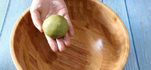 將裹好的面團再用手搓一搓,使兩種顏色面團連接的更好,然後用油紙或者保鮮膜包好。(如果怕粘連的不好,可以在綠色面皮上刷一層薄薄的水。)