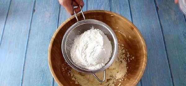 蛋液全部加入以後,這時候的黃油糊比較濕潤,蓬松。將面粉過篩篩入黃油糊中,用刮刀將面粉拌勻,拌至無顆粒狀,再用手揉成面團。