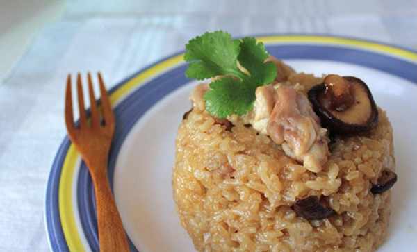 1.糯米洗凈泡水3小時後瀝幹,香菇泡軟切細條,雞腿洗凈瀝幹切小塊。