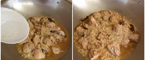 5.再下步驟1的糯米及調味料拌炒均勻。