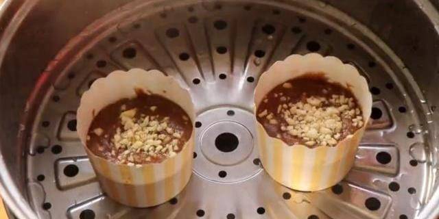 6.鍋中燒水,水開後將紙杯蛋糕放入鍋中,蓋上蓋子隔水開中火蒸15分鐘,再燜上3分鐘後開蓋。