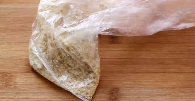 4.準備30克花生米炒香放入保鮮袋中,用搟面杖搟碎備用。