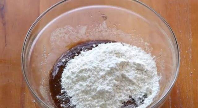 2.碗中打入一個雞蛋,再倒入30克面粉進行充分攪拌。