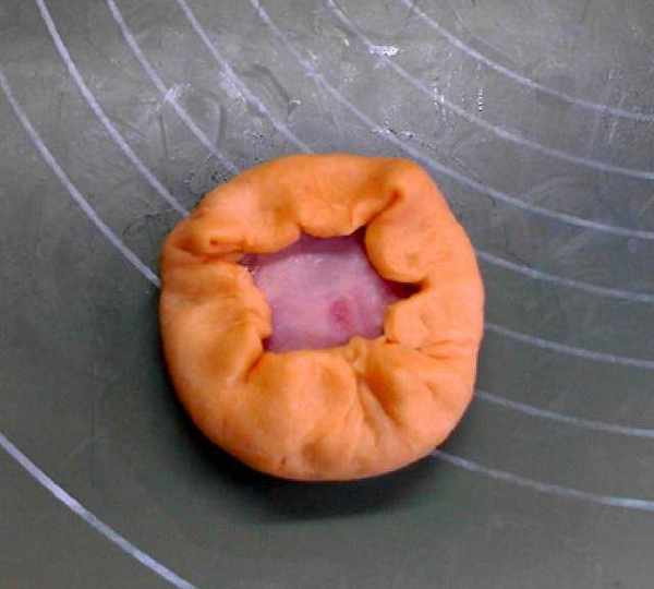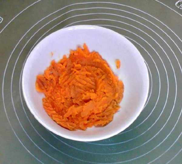 第3步、取100克紅薯泥與其他面團料一起放入大碗。