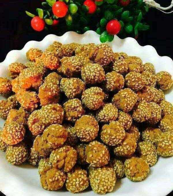 用料:面粉250克,玉米淀粉50克,小蘇打粉3克,泡打粉3克,雞蛋60克,玉米油30克,綿白糖100克,鹽1克,白芝麻(生)適量1:糖、油、鹽、雞蛋混合攪拌均勻至糖完全融化。2:面粉、玉米淀粉、泡打粉、小蘇打粉混合後倒入蛋液中攪拌均勻後揉成團。