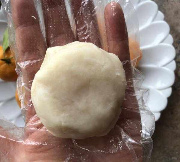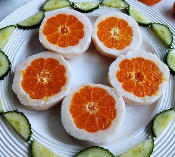 第8步、用山藥泥包裹桔子。